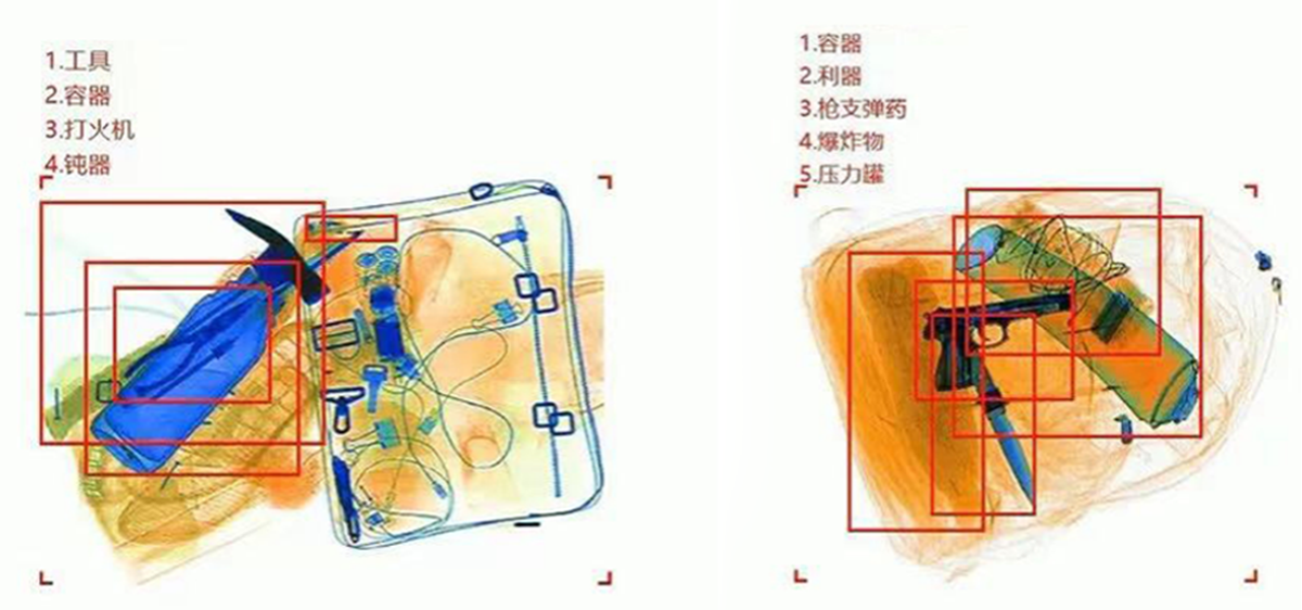目前違禁品識別是通過X光安檢機進行物品掃描,由安檢判圖人員根據個人經驗進行違禁品識別,但判圖員識別分析與個人經驗、情緒、主觀意識、工作狀態都有很大關系。安檢機基于人工智能的物品圖像識別技術,實時分析過檢視頻,提取違禁品輪廓、物質類型,可精準識別至少15大類違禁品,有效輔助判圖員對違禁品判斷和識別,提升違禁品識別效率和準確率。