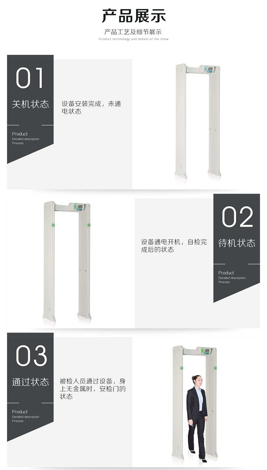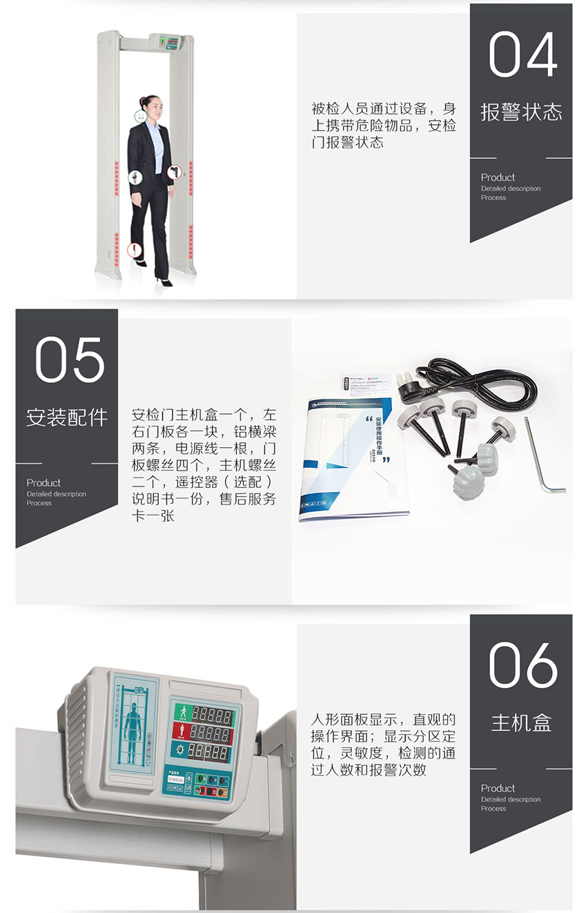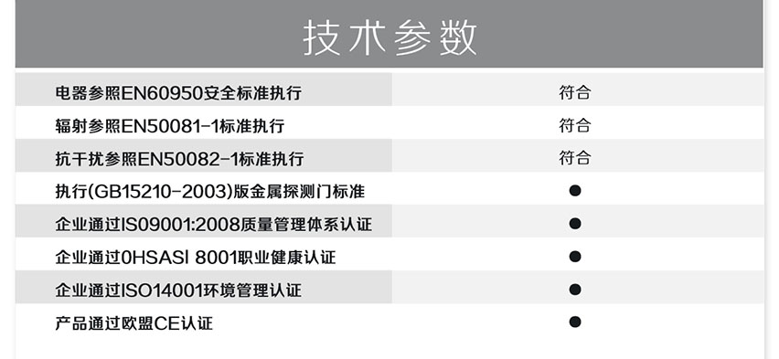 HC-TY300D金屬探測(cè)門(橫梁式)感應(yīng)快、探測(cè)準(zhǔn)、靈敏度高、抗干擾強(qiáng)、高穩(wěn)定性,電源設(shè)計(jì)在主機(jī)頂端,防水防潮,非常人性化;能滿足各行業(yè)用戶需求。此款安檢門嚴(yán)格執(zhí)行國(guó)家《GB15210-2003通過(guò)式金屬探測(cè)門技術(shù)通用技術(shù)規(guī)范》;